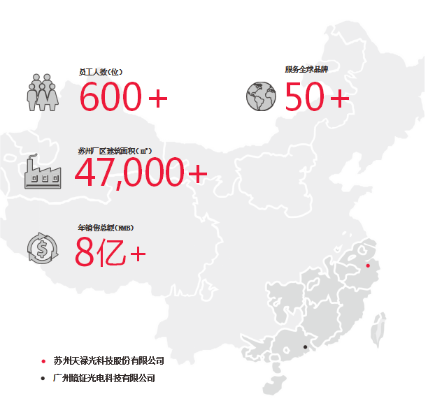 蘇州天祿光科技股份有限公司成立于2010年11月,主要從事生產(chǎn)、 銷售、研發(fā)光電導(dǎo)光板及相關(guān)零組件,2021年主營(yíng)業(yè)務(wù)收入超8億元。2013年我司在相城區(qū)黃埭鎮(zhèn)委、鎮(zhèn)政府,相城區(qū)委、 區(qū)政府的大力優(yōu)惠的招商引資政策上購(gòu)置了45畝工業(yè)用地。并建成工業(yè)用房47000平方米,現(xiàn)已正式投入使用。